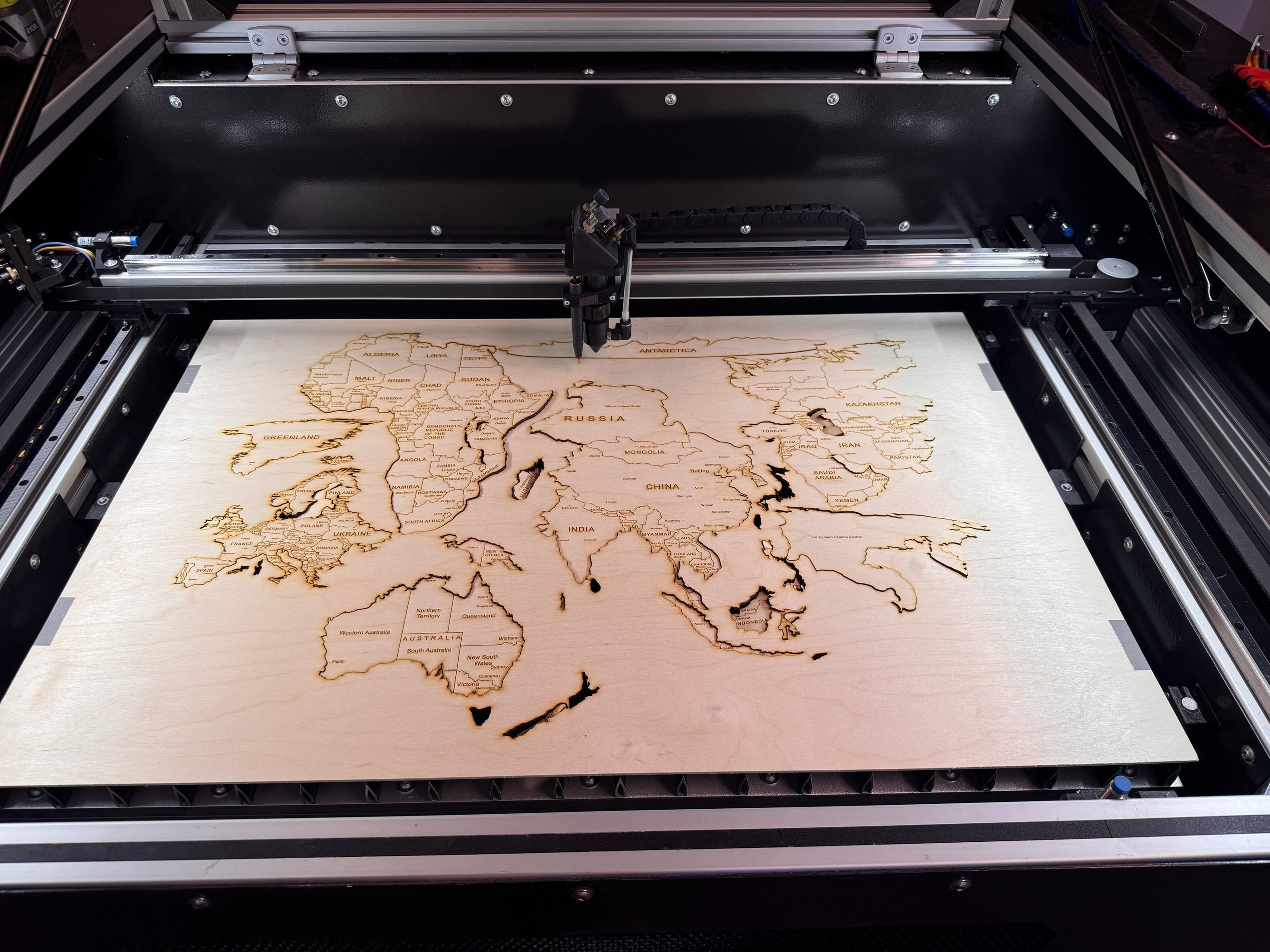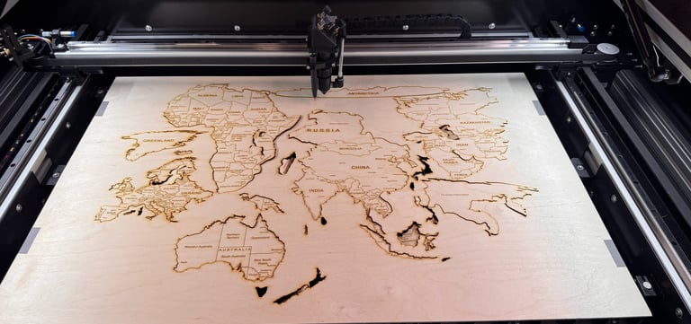 Oferujemy precyzyjne cięcie laserem CO₂ o mocy 60W, które pozwala na szybkie i dokładne wykonywanie elementów o skomplikowanych kształtach. Technologia laserowa gwarantuje czyste krawędzie, wysoką dokładność oraz brak uszkodzeń mechanicznych materiału, dzięki czemu idealnie sprawdza się zarówno przy produkcji jednostkowej, jak i seryjnej.