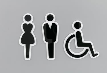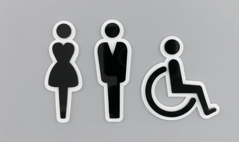 Piktogramy do przestrzeni publicznych, oznaczania pomieszczeń np. toalet, wskazówki nawigacyjne.