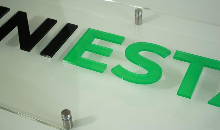 Napisy / logotypy 3D z plexi tworzone na wymiar, doskonałe do biur, recepcji i przestrzeni komercyjnych.