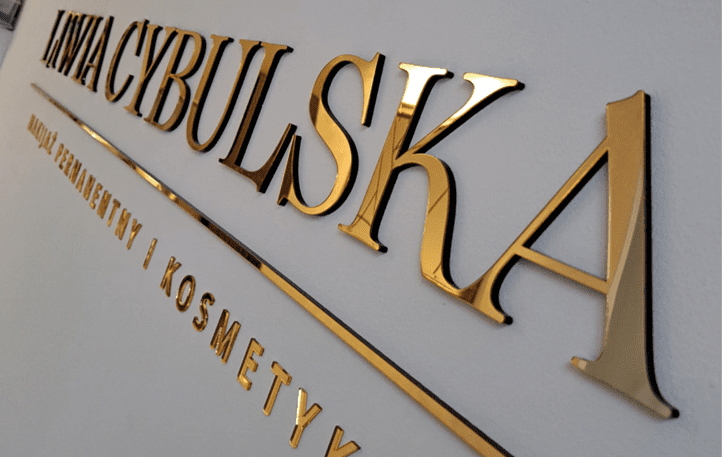 Szyldy, loga i wzory na ścianę wykonane z lustrzanej plexi o dowolnym kolorze.