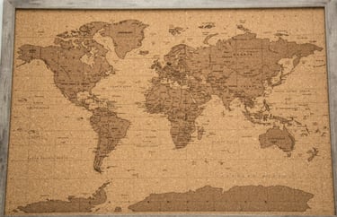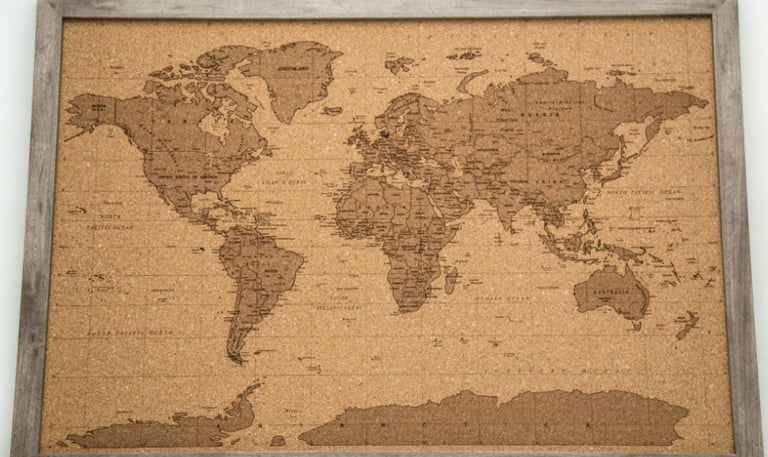 Mapy korkowe w ramie z możliwością zaznaczania pinezkami odwiedzonych miejsc.