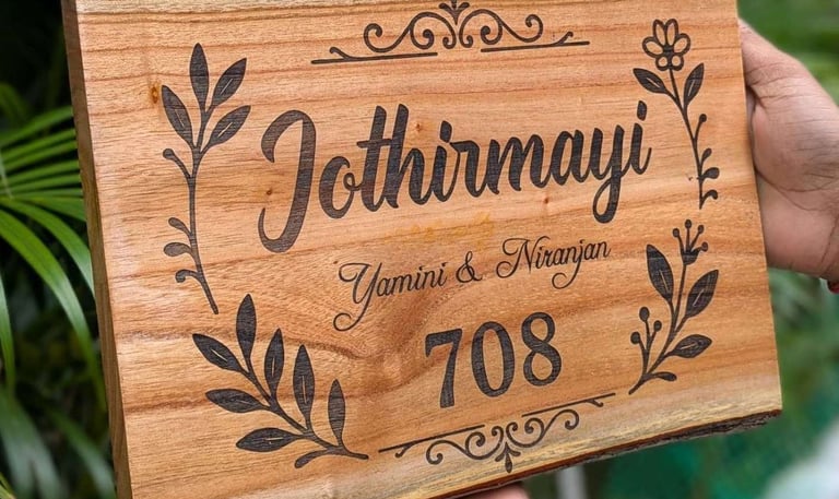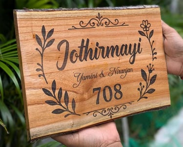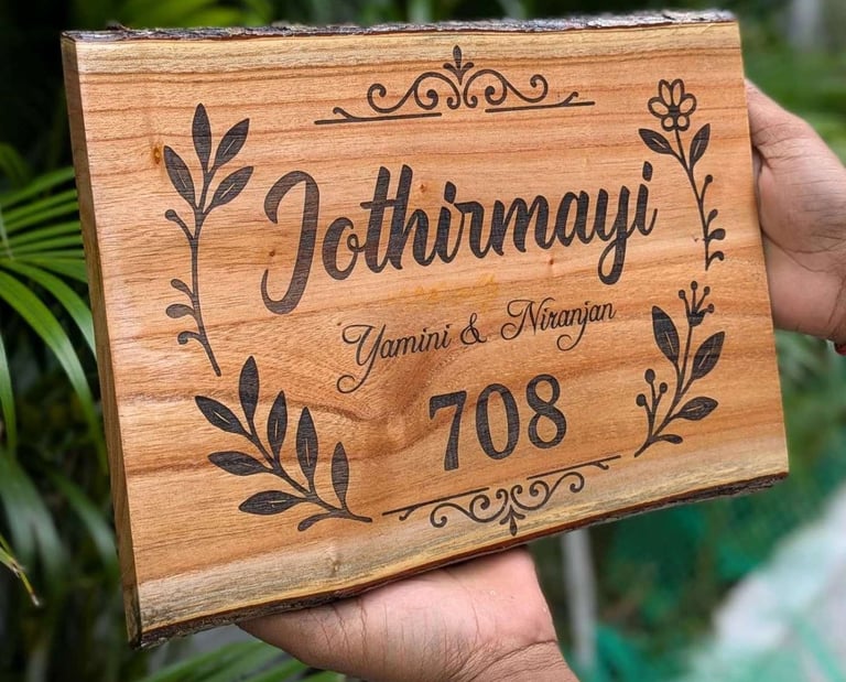 Drewniane tabliczki z napisami grawerowanymi laserowo, idealne do wnętrz i lokali.