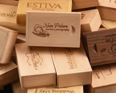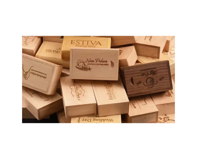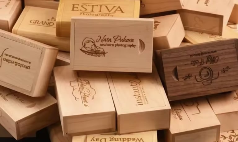 Pudełka drewniane z grawerem, doskonałe na opakowania prezentów i personalizowane opakowania.