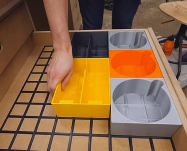 Organizery i pojemniki drukowane w 3D, funkcjonalne i w pełni personalizowane. Mozliwośc tworzenia modularnych systemów na zamówienie.